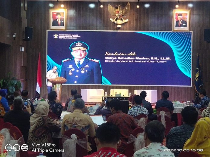 (Vibizmedia – Kalbar) Jakarta-Kepala Divisi Pelayanan Hukum dan HAM Kalimantan Barat (Kalbar) Harniati mewakili Kepala Kantor Wilayah Kementerian Hukum dan HAM Kalbar Pria Wibawa, mengikuti Rapat persiapan penyusunan alokasi anggaran unit Direktorat Jenderal Administrasi Hukum (Ditjen AHU) Umum Tahun Anggaran 2023, Kamis (06/10/2022).