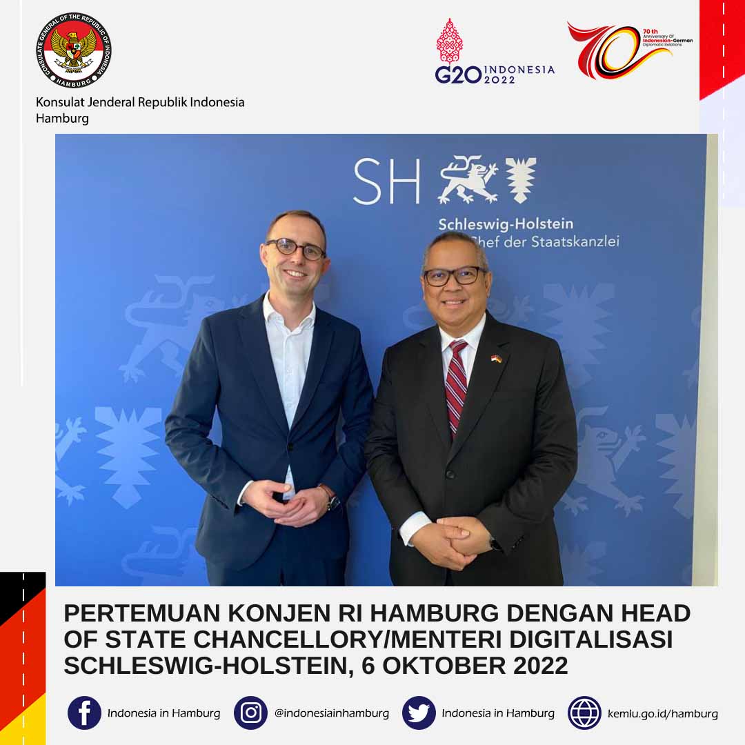 Tidak hanya itu, Head of the State Chancellory Schleswig-Holstein juga menduduk posisi sebagai Menteri Digitalisasi, maka dalam pertemuan juga dibahas peluang kerja sama smart city dengan memanfaatkan teknologi digital & artificial intelligent.