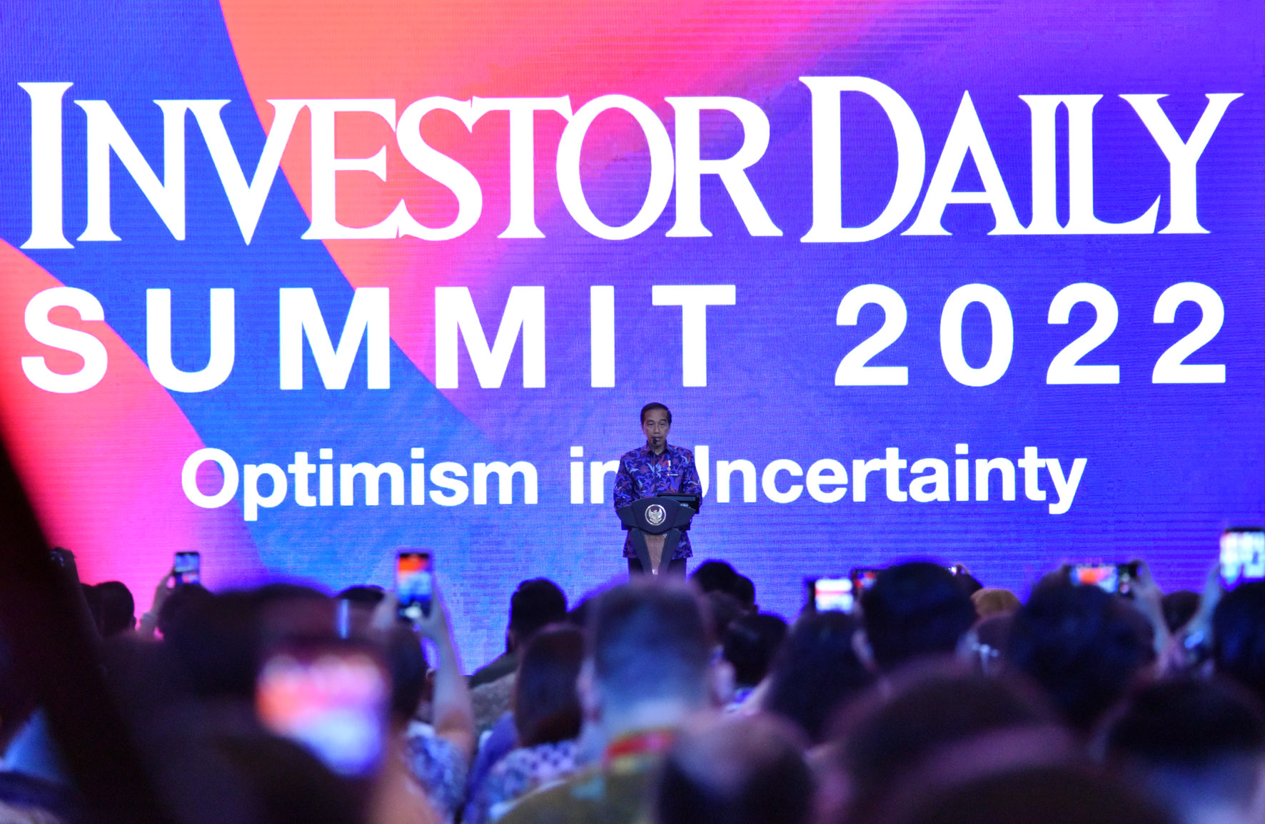 “Inilah yang sering disampaikan, membayar harga dari sebuah perang yang harganya sangat mahal sekali. Tetapi dengan ketidakpastian yang tadi saya sampaikan, kita harus tetap optimistis, harus optimistis itu, tetapi, hati-hati dan waspada. Karena apa pun angka-angka yang kita miliki, Indonesia, pertumbuhan ekonomi di kuartal kedua kita termasuk yang terbaik di dunia, 5,44 persen,” ujar Presiden saat secara resmi membuka Investor Daily Summit 2022 yang mengusung tema ‘Optimism in Uncertainty’ di Jakarta Convention Center (JCC), pada Selasa, 11 Oktober 2022.