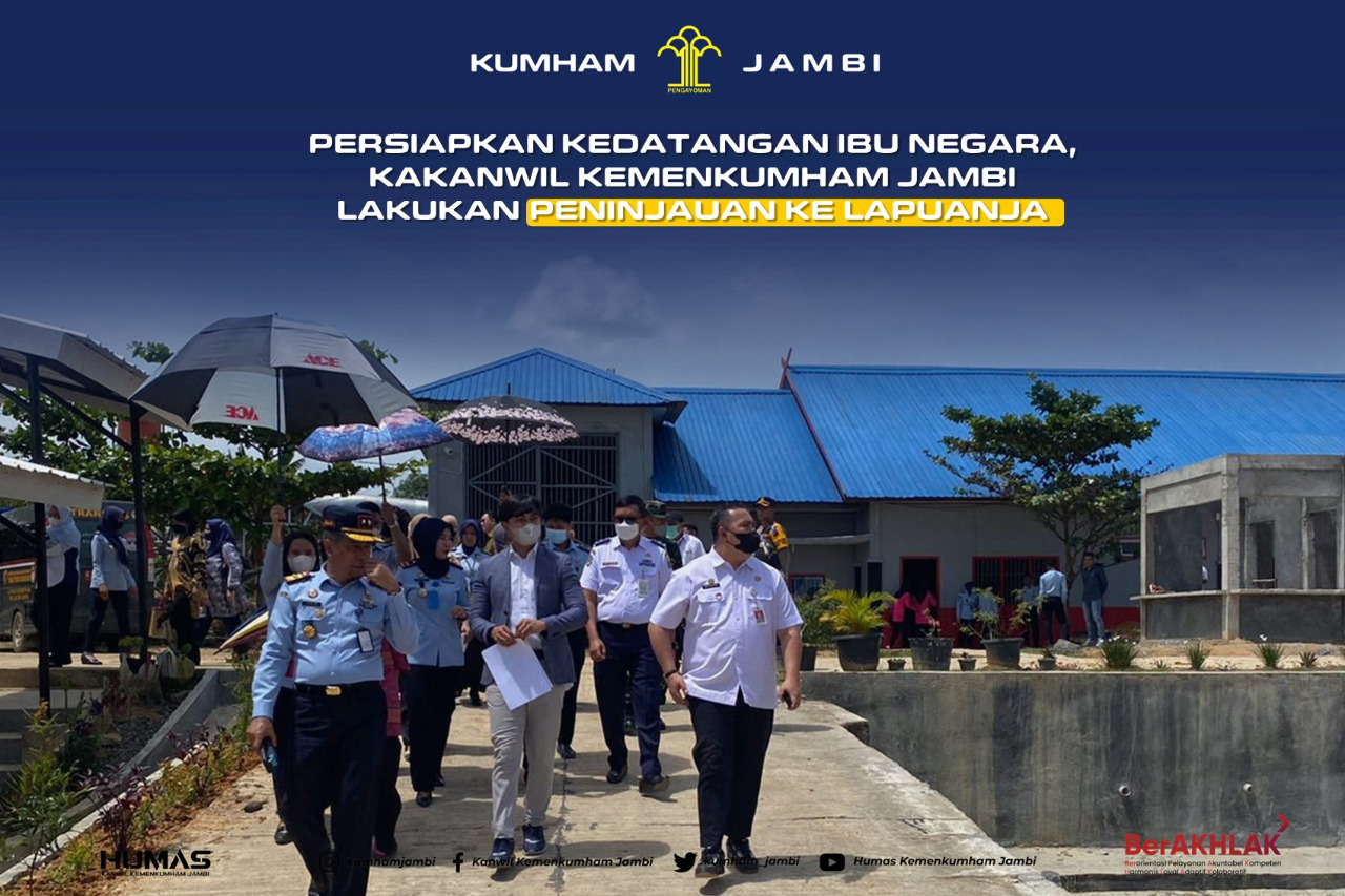 (Vibizmedia – Jambi) JAMBI, Jelang Kedatangan Ibu Negara Iriana Jokowidodo yang direncanakan pada tanggal 20 Oktober 2022 mendatang, Kepala Kantor Wilayah Jambi Tholib bersama Karo Adpim Pemda Prop Jambi, Ibu Kapolda Jambi, Danrem Garuda Putih, Wakalpores Muaro Jambi dan Tim advance dari protokol Kepresidenan melaksanakan kunjungan kerja ke Lembaga Pemasyarakatan Perempuan Jambi (Lapuanja) pada Senin (10/10/2022) guna memastikan lokasi yang akan dikunjungi oleh Ibu Negara termasuk Blok Hunian dalam keadaan baik dan kondusif.