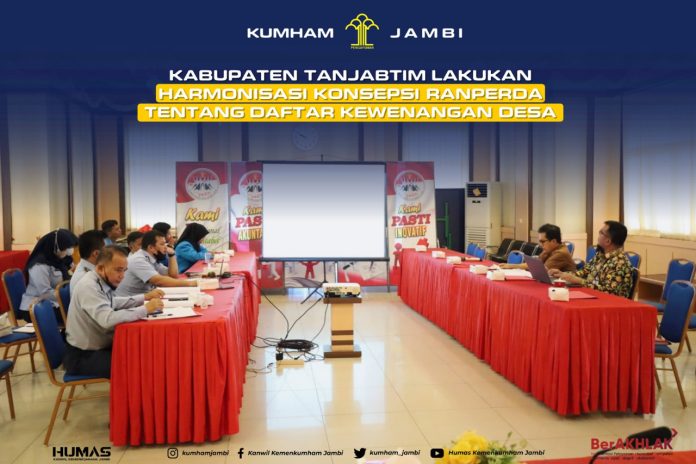 Kabupaten Tanjung Jabung Timur melaksanakan Pengharmonisasian, Pembulatan dan Pemantapan Konsepsi 1 Ranperda tentang: Daftar Kewenangan Desa Berdasarkan Hak Asal Usul dan Kewenangan Lokal berkala Desa.