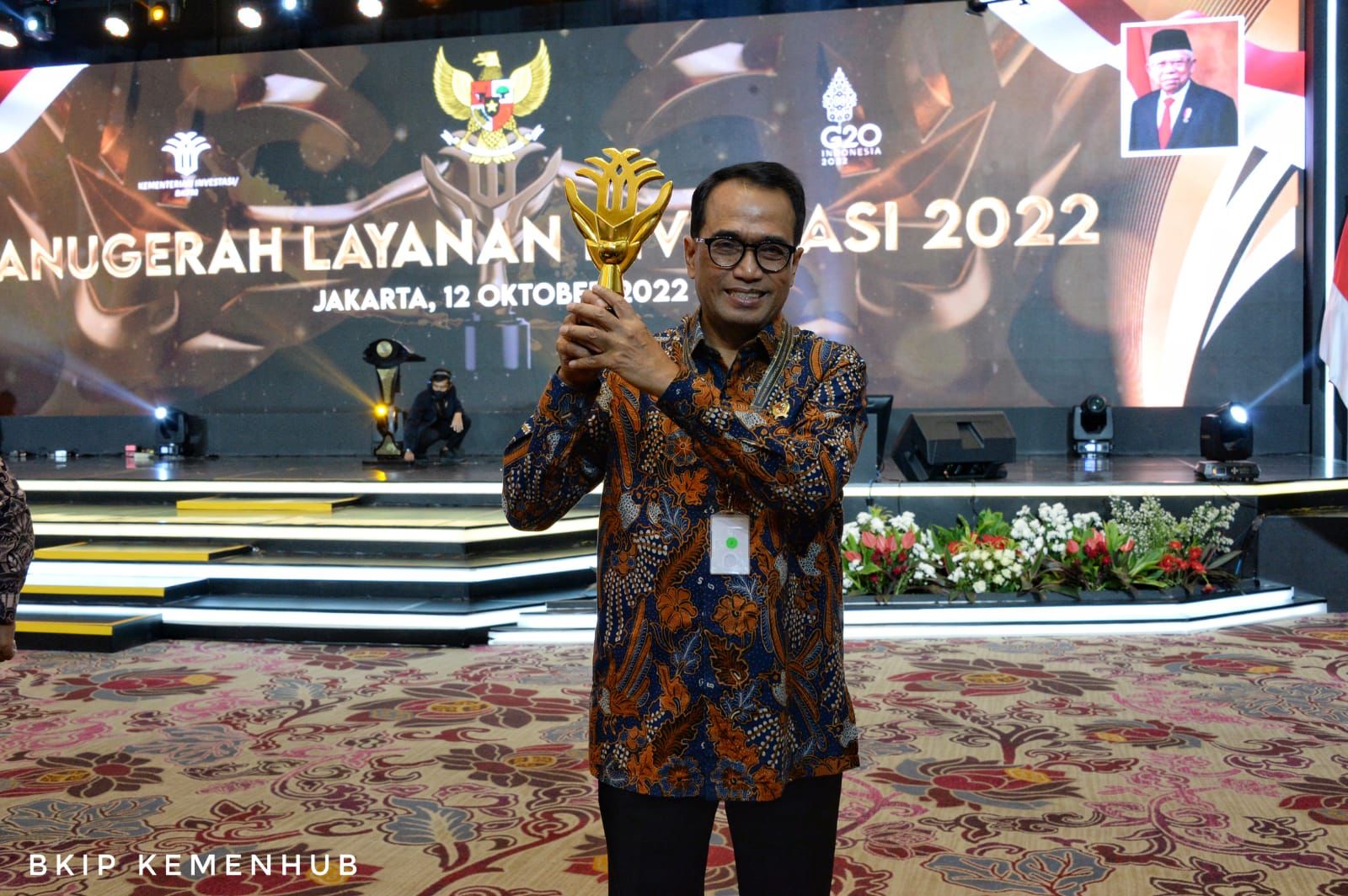 Menteri Perhubungan (Menhub) Budi Karya Sumadi menerima penghargaan tersebut, yang disaksikan langsung oleh Wakil Presiden (Wapres) RI Ma’ruf Amin dan Menteri Investasi/ Kepala BKPM Bahlil Lahadalia, di Jakarta, Rabu (12/10/2022).