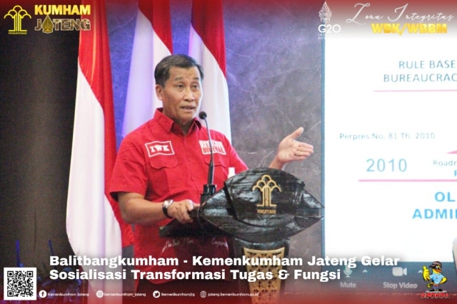 Terkait kegiatan utama, yakni Sosialisasi transformasi tugas dan fungsi Badan Penelitian dan Pengembangan Hukum dan Hak Asasi Manusia menjadi Badan Strategi Kebijakan Hukum dan Hak Asasi Manusia, Kepala Kanwil Kemenkumham Jateng DR A Yuspahruddin menilai, perubahan tersebut akan berdampak pada pelaksanaan tugas dan fungsi organisasi yang dipimpinnya.”Kami yakin bahwa transformasi ini akan berakibat pada transformasi pekerjaan di Kantor Wilayah,” ujarnya saat memberikan sambutan selamat datang.”Saya berharap rekan-rekan sekalian khususnya, untuk kita bersama-sama menerima apa yang akan disampaikan oleh tim dari Balitbangkumham. Bahwa tentu akan berakibat pada perubahan. Akan terjadi perubahan di Nomenklatur di tempat kita nanti,” sambungnya menyakini.