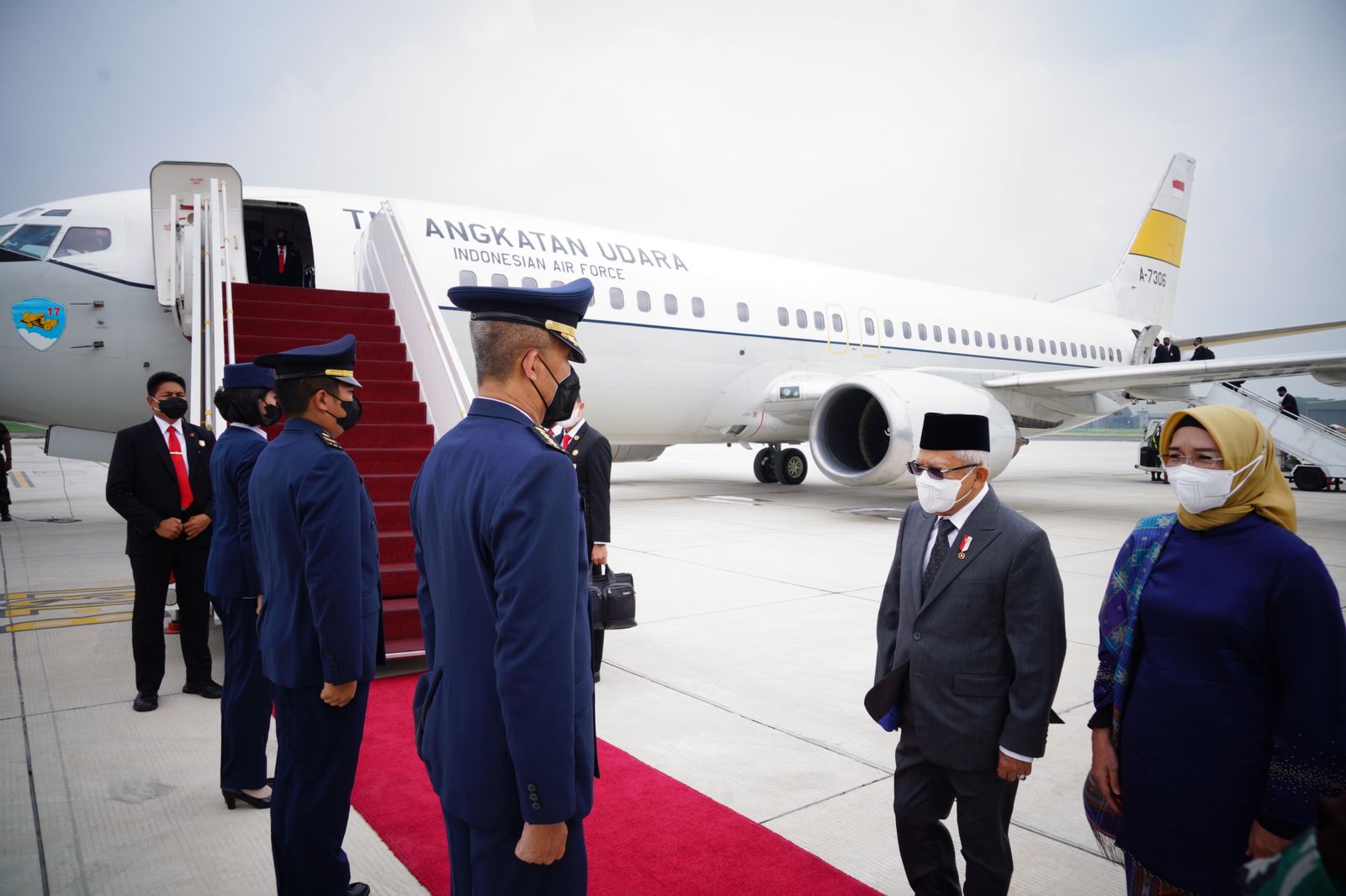 Wakil Presiden (Wapres) K.H. Ma’ruf Amin beserta Ibu Hj. Wury Ma’ruf Amin dan rombongan terbatas hari ini bertolak ke Singapura, Senin (17/10/2022). (Foto: BPMI Setwapres)