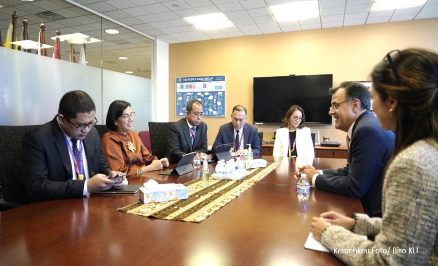 (Vibizmedia–Nasional) Menteri Keuangan (Menkeu) Sri Mulyani Indrawati melakukan pertemuan dengan Vice President of Global Government Affairs and Public Policy Google Karan Bathia di Washinton DC, Amerika Serikat pada Jumat (14/10).