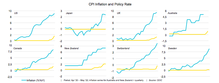 Sebagian besar bank sentral di negara maju telah mulai menyesuaikan tingkat kebijakan mereka ke atas untuk menjinakkan tekanan inflasi yang meningkat.
