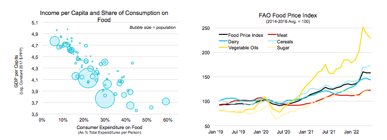 Karena rumah tangga di negara-negara miskin cenderung membelanjakan lebih banyak pendapatan mereka untuk bahan makanan, kenaikan harga pangan menambah tekanan yang lebih besar pada negara-negara berkembang dibandingkan dengan negara-negara maju.