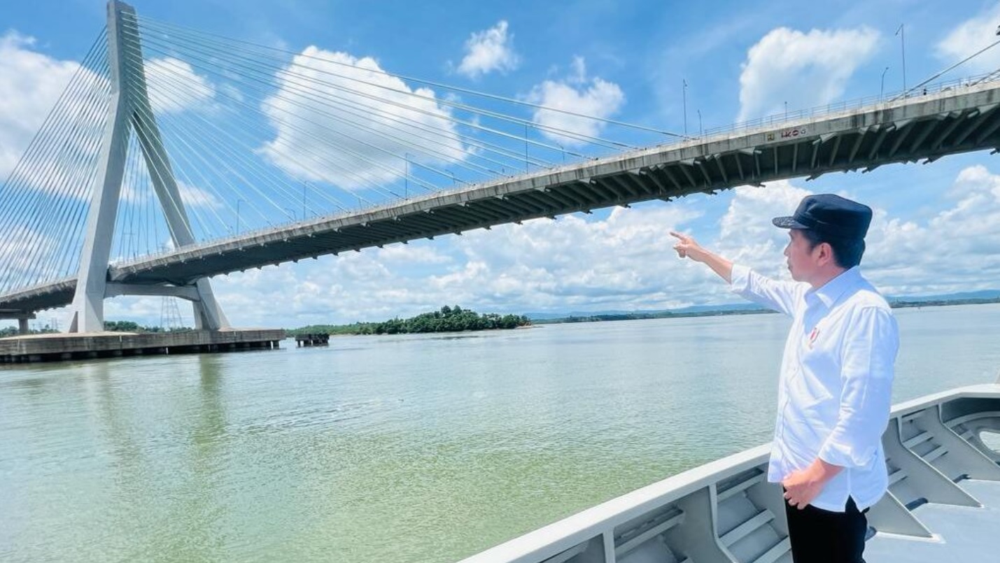 Dalam perjalanan tersebut, Presiden dan rombongan melintasi Jembatan Pulau Balang yang menghubungkan Balikpapan dan IKN.
