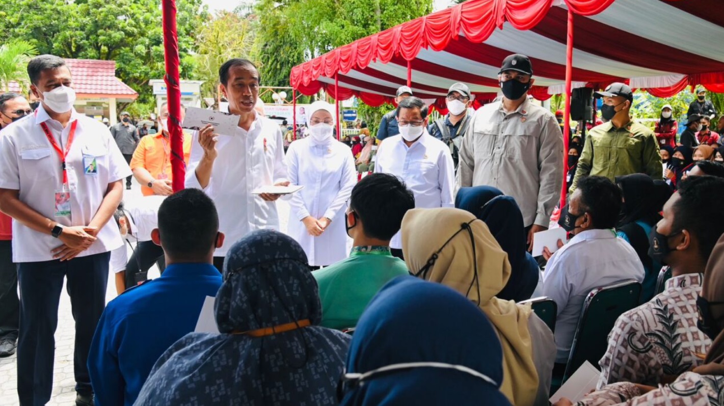 “Ini yang Rp1,2 juta bantuan presiden, yang Rp300 (ribu) BLT BBM. Bisa dibelikan untuk gizi anak,” terang Presiden Jokowi kepada para penerima manfaat.