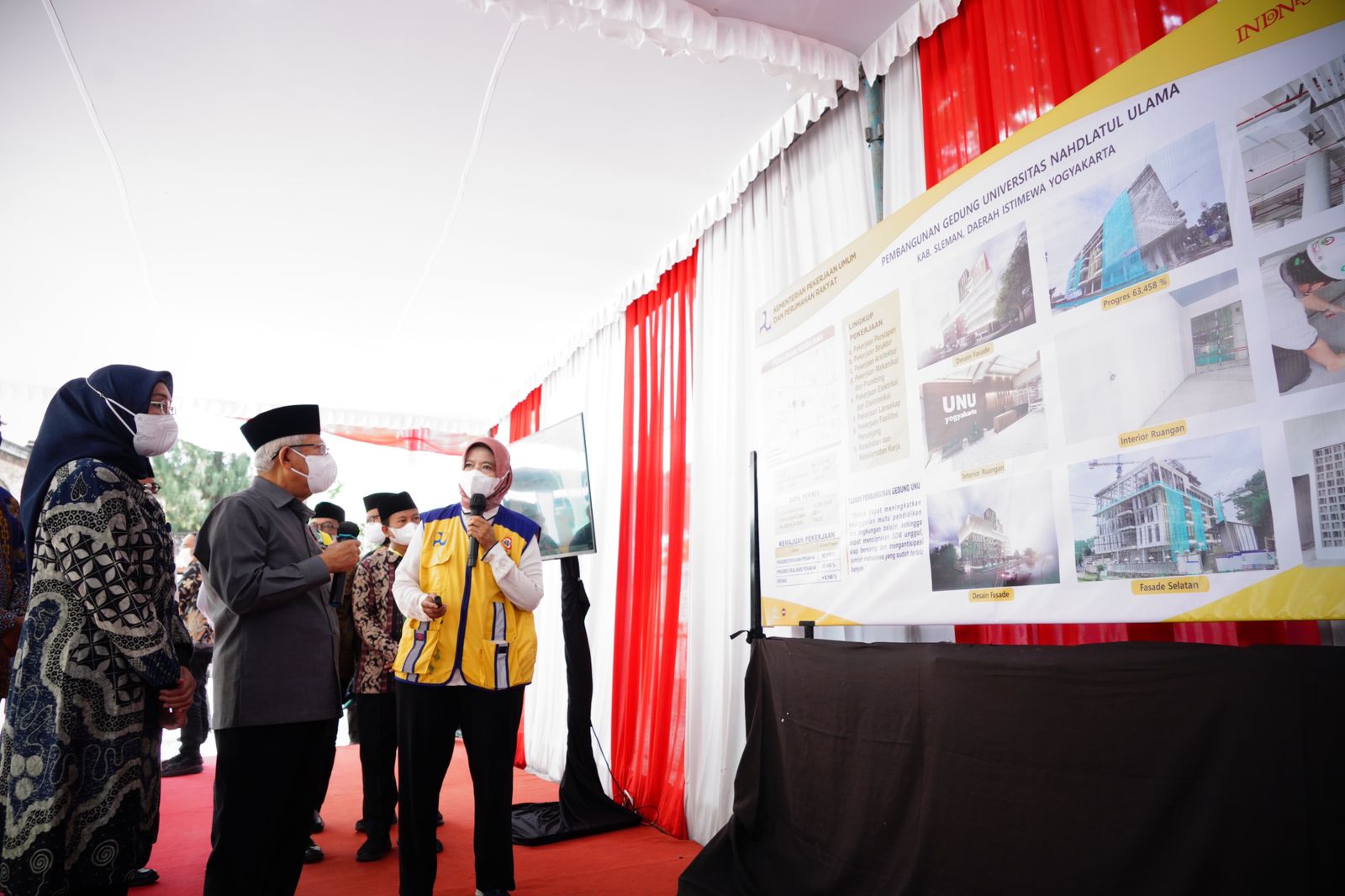 Wapres pun mengapresiasi seluruh pihak terkait yang telah bekerja keras sehingga proses pembangunan gedung baru UNU berjalan sesuai target yang telah ditentukan, khususnya kepada Gubernur DIY yang telah membantu penyiapan lahannya.