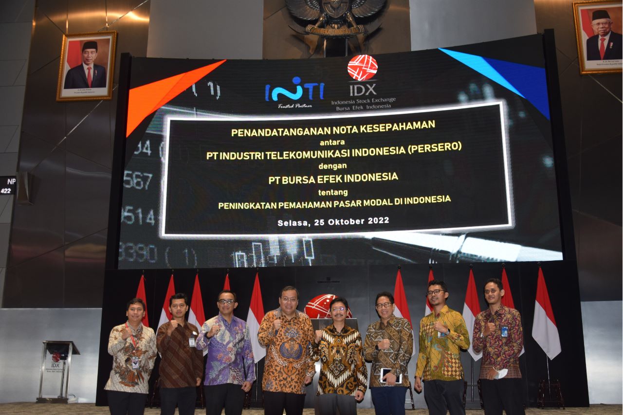 (Vibizmedia – Jakarta) PT Industri Telekomunikasi Indonesia (Persero) (“PT INTI (Persero)”) meresmikan kolaborasi dengan PT Bursa Efek Indonesia (“BEI”) memasuki kuartal akhir tahun 2022. Sinergi strategis terkait target penawaran umum saham perdana (Initial Public Offering atau IPO) pada tahun 2025 itu diinisiasi melalui penandatanganan Nota Kesepahaman (Memorandum of Understanding atau MOU) tentang Pemahaman Pasar Modal di Indonesia.