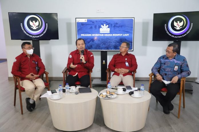 Doni Ismanto dalam Talkshow Bincang Bahari mengupas “Peluang Investasi Usaha Rumput Laut” yang digelar hybrid dari Media Center KKP di Jakarta, Selasa (25/10/2022) menyatakan, rumput laut ini bisa dikatakan emas hijau dari laut. Indonesia memiliki summer dayanya, itu sebabnya jangan sampai kita kehilangan kesempatan. Itu sebabnya dari lima program ekonomi biru KKP, salah satunya pengembangan budidaya berkelanjutan. Salah satu komoditas yang didorong adalah rumput laut. Tetanie tantangannya adalah, meski secara volume cukup besar tetapi masih dalam bentuk mentah dan belum menjadi olahan yang memiliki nilai lebih.