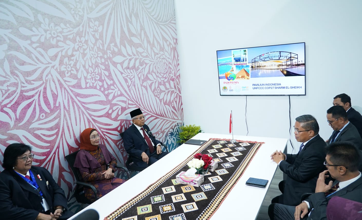 “Indonesia terus berupaya untuk lead by example (memimpin dengan contoh) melalui berbagai upaya positif, seperti peningkatan target penurunan emisi Indonesia dalam Enhanced Nationally Determined Contribution menjadi 31,89% dengan kemampuan sendiri dan 43,20% dengan dukungan internasional,” ujar Wakil Presiden (Wapres) K.H. Ma’ruf Amin dalam keterangannya kepada media, di Paviliun Indonesia, Sharm El Sheikh Convention Centre (SHICC), Sharm El Sheikh, Mesir, Selasa (08/11/2022).