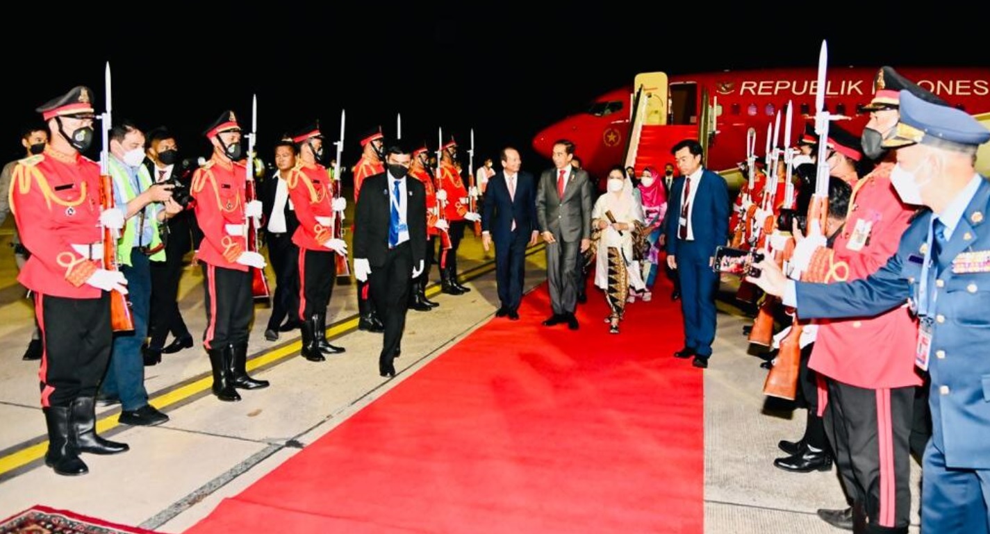 (Vibizmedia-Nasional) Setelah menempuh penerbangan selama kurang lebih 3,5 jam dari Bandara I Gusti Ngurah Rai di Bali, Presiden Joko Widodo dan Ibu Iriana Joko Widodo yang turut didampingi oleh Menteri Sekretaris Negara Pratikno tiba di Bandara Internasional Phnom Penh, Kamboja sekitar pukul 19.30 waktu setempat, Rabu, 9 November 2022.