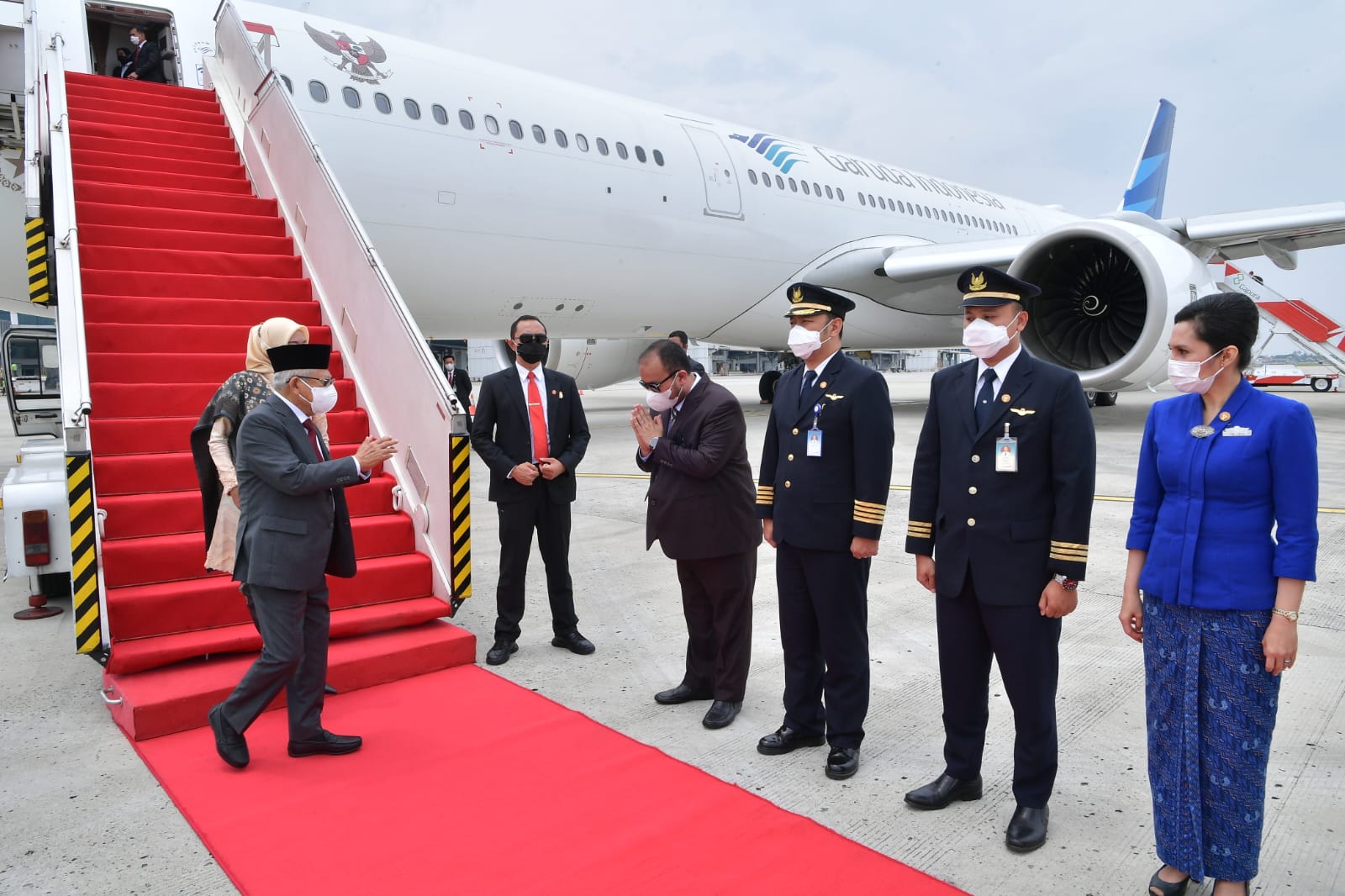 Wakil Presiden (Wapres) K.H. Ma’ruf Amin beserta Ibu Hj. Wury Ma’ruf Amin dan rombongan tiba di tanah air setelah melakukan serangkaian kunjungan kerja ke Persatuan Emirat Arab (PEA) dan Mesir, Rabu (09/11/2022). (Foto: BPMI Setwapres)