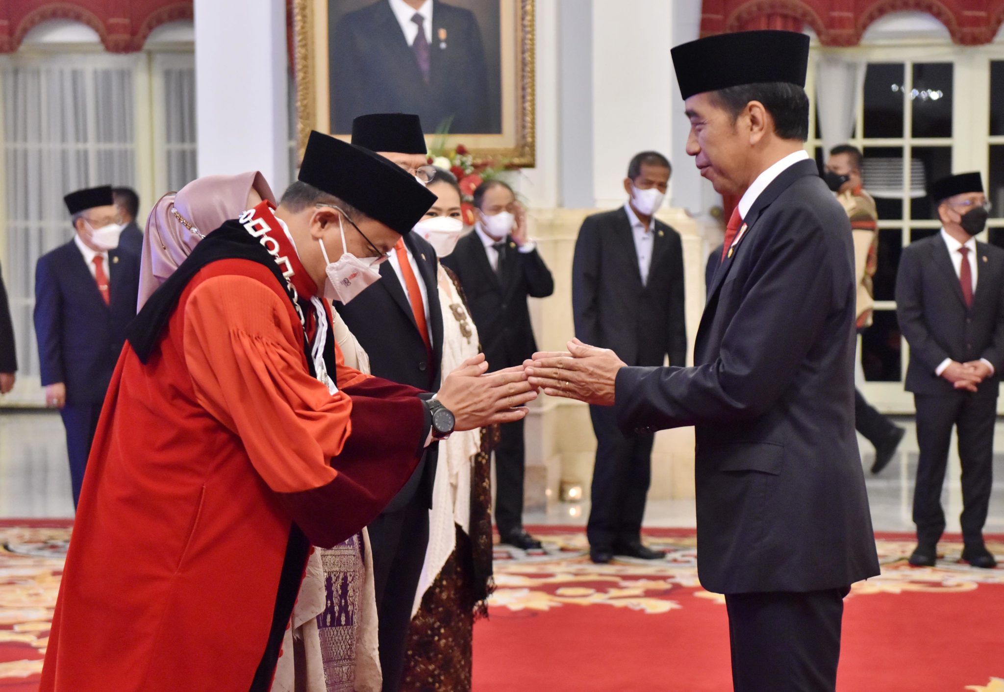 (Vibizmedia-Nasional) Presiden Joko Widodo menyaksikan Pengucapan Sumpah Hakim Konstitusi Guntur Hamzah di Istana Negara, Jakarta, Rabu, 23 November 2022.