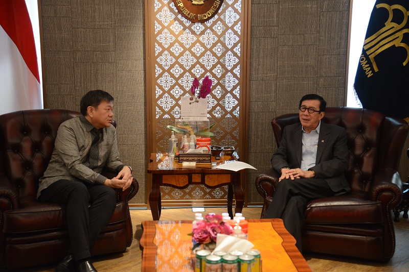 Kwok Seng menyambangi Yasonna di kantornya di kawasan Kuningan Jakarta. Keduanya membahas kerja sama lebih intens antara Singapura – Indonesia, khususnya terkait ranah tugas Kementerian Hukum dan HAM (Kemenkumham).