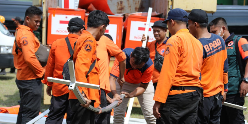 Tim Gabungan telah melakukan pendistribusian bantuan peralatan dan logistik pada 15 kecamatan terdampak. Dapur umum, rumah sakit darurat dan tenda-tenda pengungsian telah dibangun untuk mendukung pemenuhan kebutuhan dasar warga terdampak.