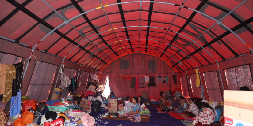 “Terdapat kurang lebih 100 orang disini, termasuk diantaranya 30 anak-anak, disini dominan pengungsi perempuan,” jelasnya.