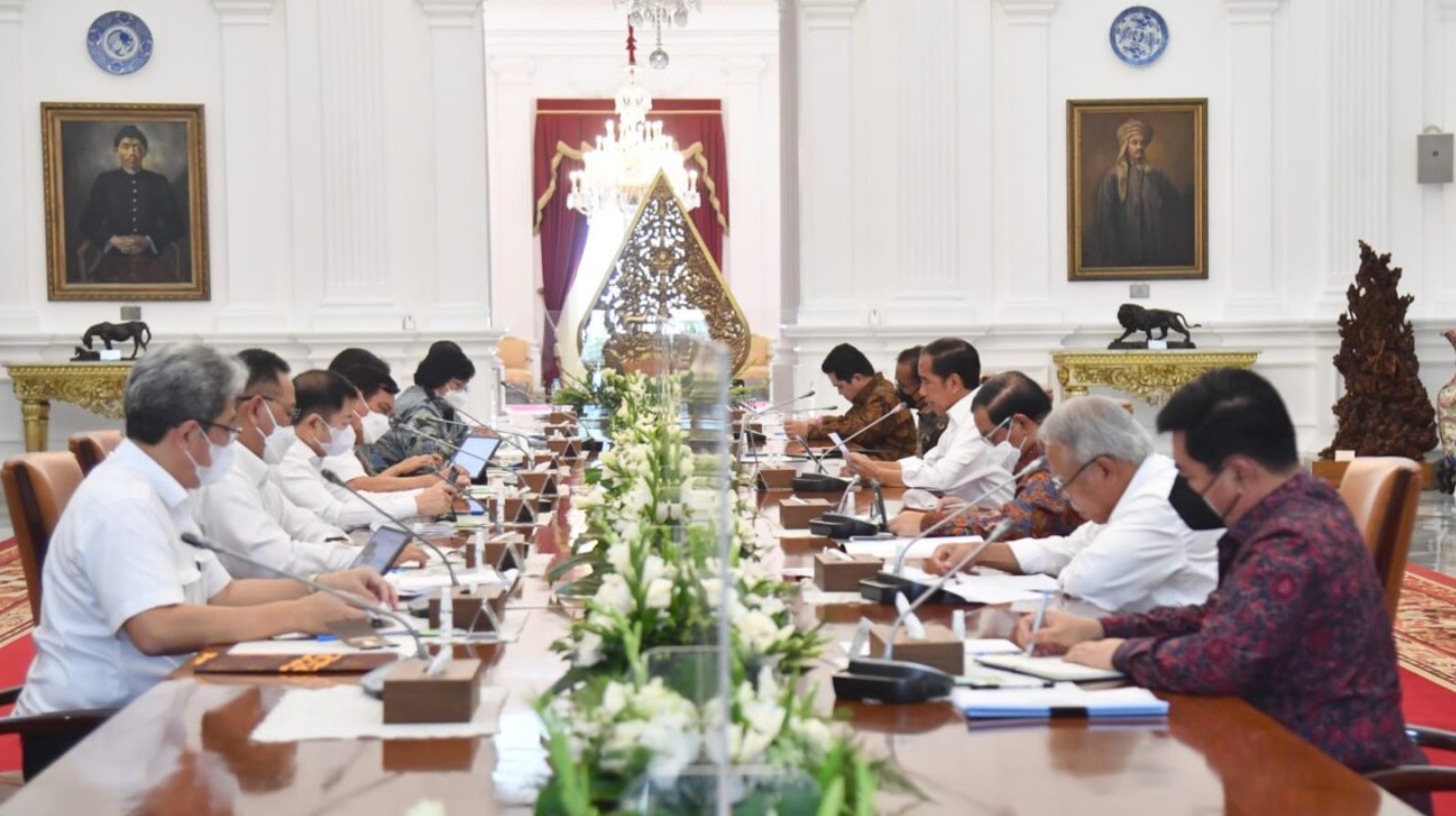 (Vibizmedia-Nasional) Presiden Joko Widodo kumpulkan jajarannya di Istana Merdeka untuk membahas status minat investasi di Ibu Kota Nusantara (IKN), pada Senin, 28 November 2022.