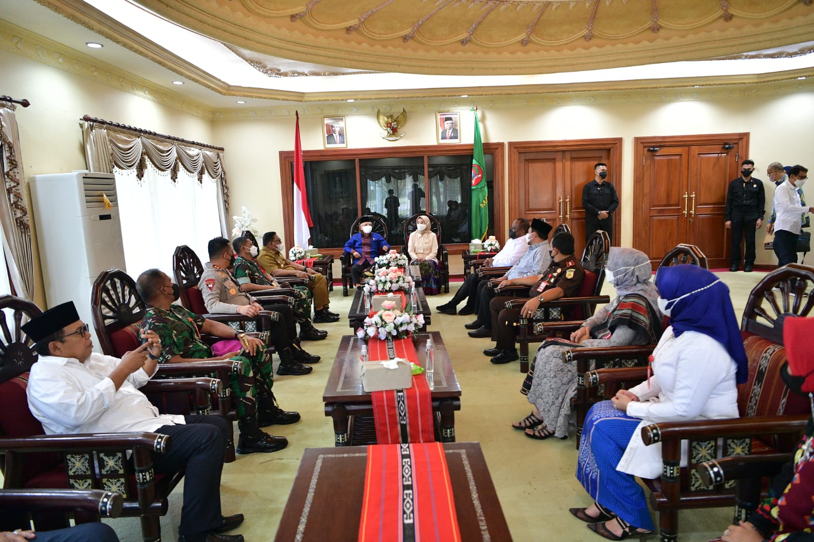 Ketibaan Wapres disambut oleh Gubernur Provinsi Maluku Murad Ismail dan Anggota Forum Koordinasi Pimpinan Daerah Provinsi Maluku, serta Tarian Selamat Datang “Lenso Lawat” yang apik disajikan menyambut kedatangan Wapres.