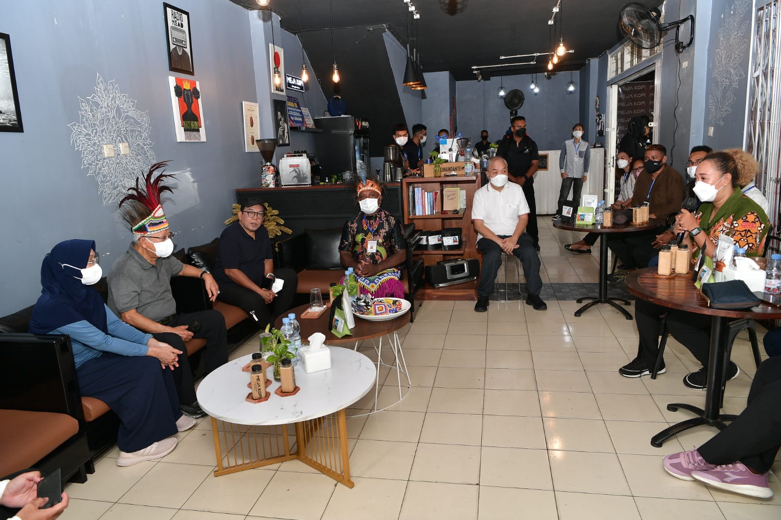 Wapres juga mengapresiasi para pemuda dan komunitas-komunitas di Papua, khususnya kepada Meja Kopi yang telah berperan dalam kemajuan kopi Papua.