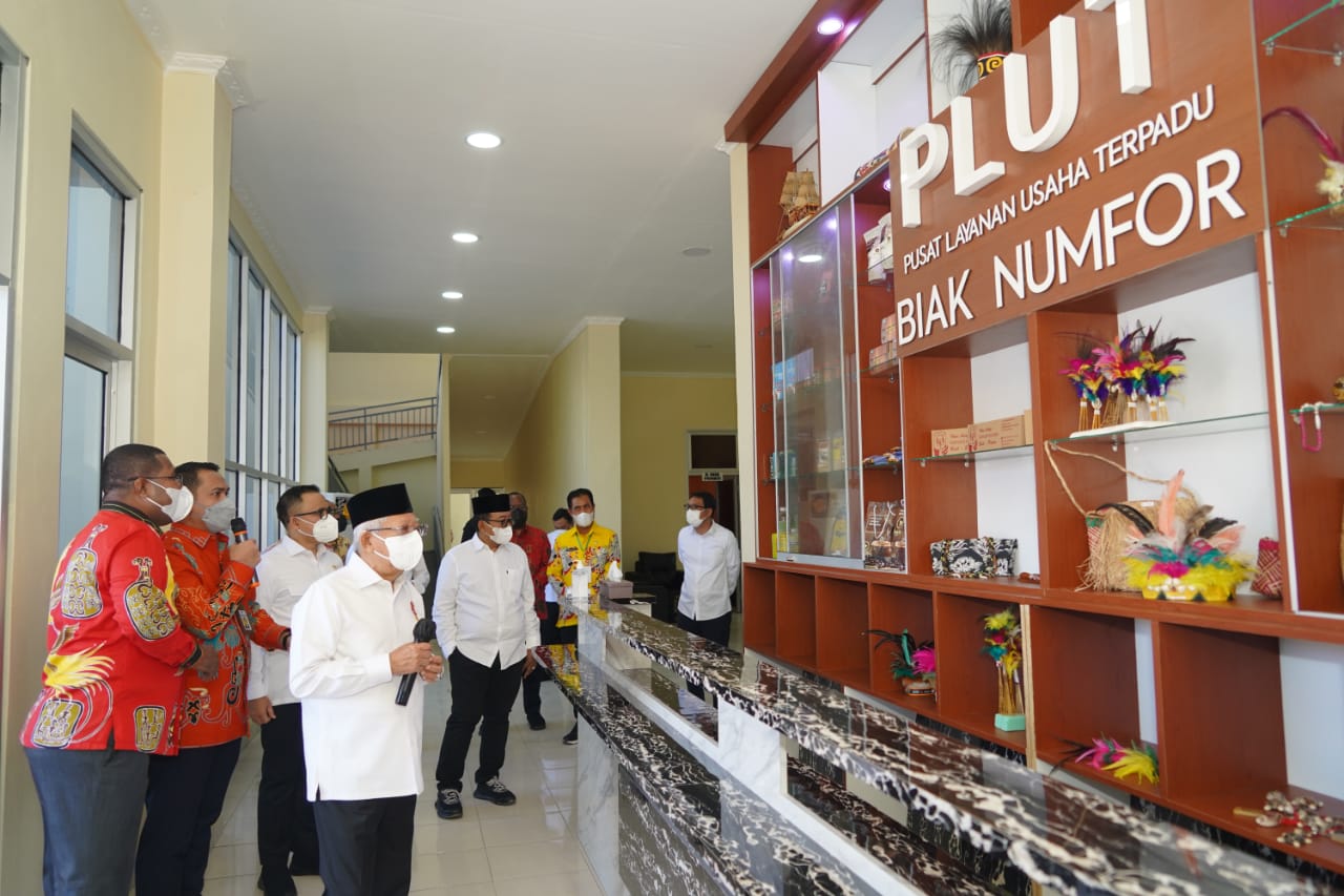 (Vibizmedia – Biak Numfor) Mengawali rangkaian kunjungan kerjanya di Kabupaten Biak Numfor, Provinsi Papua, Wapres meninjau Pusat Pelayanan Usaha Terpadu Koperasi Usaha Mikro Kecil dan Menengah (PLUT KUMKM) Kabupaten Biak Numfor, Jumat (02/12/2022)