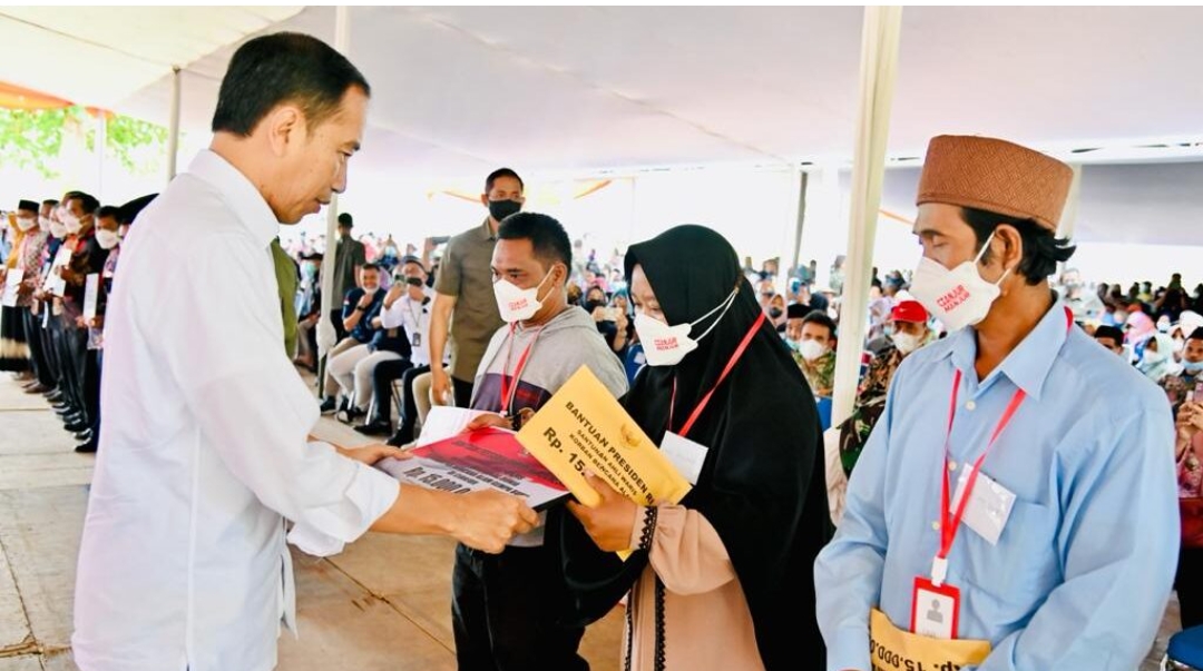 (Vibizmedia-Nasional) Presiden Joko Widodo menyerahkan langsung bantuan stimulan untuk perbaikan rumah warga terdampak gempa bumi Cianjur di Lapangan Tembak Tapal Kuda Yonif Raider 300, Kecamatan Karangtengah, Kabupaten Cianjur, Provinsi Jawa Barat, Kamis, 8 Desember 2022.