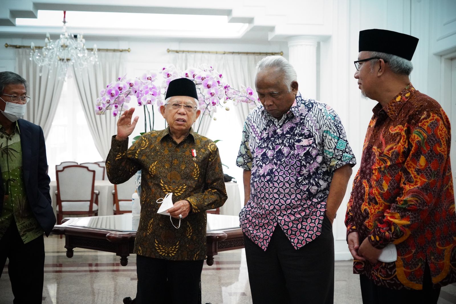 Sementara, Wapres didampingi oleh Deputi Bidang Dukungan Kebijakan Pembangunan Ekonomi dan Peningkatan Daya Saing Guntur Iman Nefianto, Deputi Bidang Dukungan Kebijakan Pemerintahan dan Wawasan Kebangsaan Velix Vernando Wanggai, dan Staf Khusus Wapres Bidang Umum Masykuri Abdillah.