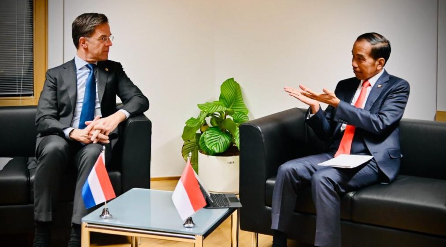 (Vibizmedia-Nasional) Di sela penyelenggaraan Konferensi Tingkat Tinggi (KTT) Peringatan 45 Tahun ASEAN-Uni Eropa, Presiden Joko Widodo yang didampingi Menteri Koordinator Bidang Perekonomian Airlangga Hartarto, Menteri Luar Negeri Retno Marsudi, Menteri Sekretaris Negara Pratikno, Menteri Perindustrian Agus Gumiwang Kartasasmita melakukan pertemuan bilateral dengan Perdana Menteri Belanda Mark Rutte di Gedung Europa, Brussels, Rabu, 14 Desember 2022.