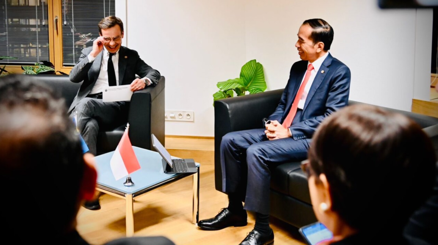 (Vibizmedia-Nasional) Di sela penyelenggaraan KTT Peringatan 45 Tahun ASEAN-Uni Eropa, Presiden Joko Widodo yang didampingi oleh Menteri Koordinator Bidang Perekonomian Airlangga Hartarto, Menteri Luar Negeri Retno Marsudi, Menteri Sekretaris Negara Pratikno, Menteri Perindustrian Agus Gumiwang Kartasasmita, dan Duta Besar RI Brussels Andri Hadi melakukan pertemuan bilateral dengan Perdana Menteri Swedia Ulf Kristersson di Gedung Europa, Brussels, Rabu, 14 Desember 2022.