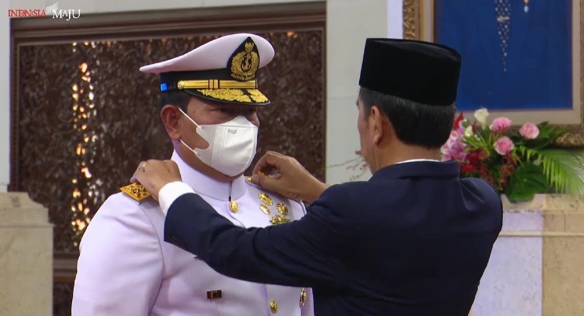 (Vibizmedia-Nasional) Berdasarkan Keputusan Presiden (Keppres) Nomor 91/TNI Tahun 2022 tentang Pemberhentian dan Pengangkatan Panglima Tentara Nasional Indonesia yang ditetapkan di Jakarta tanggal 19 Desember 2022, Presiden Joko Widodo melantik dan mengambil sumpah jabatan Laksamana Yudo Margono sebagai Panglima Tentara Nasional Indonesia (TNI) di Istana Negara.