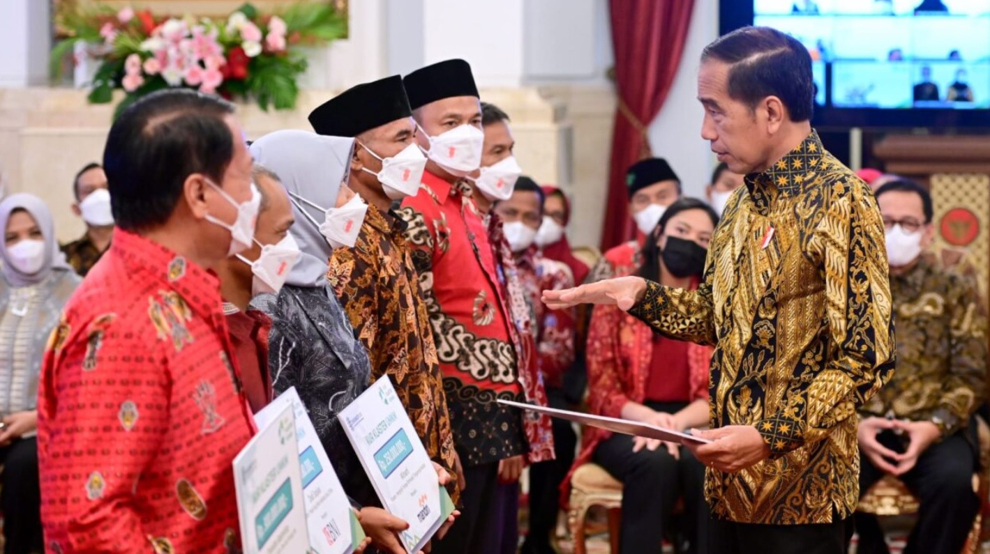 (Vibizmedia-Nasional) Presiden Joko Widodo menyerahkan kredit usaha rakyat (KUR) klaster dan menyalurkan dana melalui Lembaga Pengelola Dana Bergulir Koperasi dan Usaha Mikro, Kecil, dan Menengah (LPDB KUMKM) di Istana Negara, Jakarta, pada Senin, 19 Desember 2022. Pada kesempatan tersebut, Presiden menyerahkan KUR klaster dan menyalurkan dana melalui LPDB KUMKM kepada sejumlah perwakilan penerima yang hadir di Istana Negara.