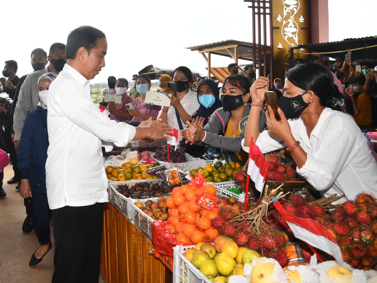 Dalam kunjungan tersebut, Presiden menyerahkan sejumlah bantuan sosial kepada para pedagang yang ada di Pasar Utan. Novi, salah satu pedagang yang mendapatkan bantuan mengaku akan menggunakan bantuan tersebut untuk tambahan modal usahanya.
