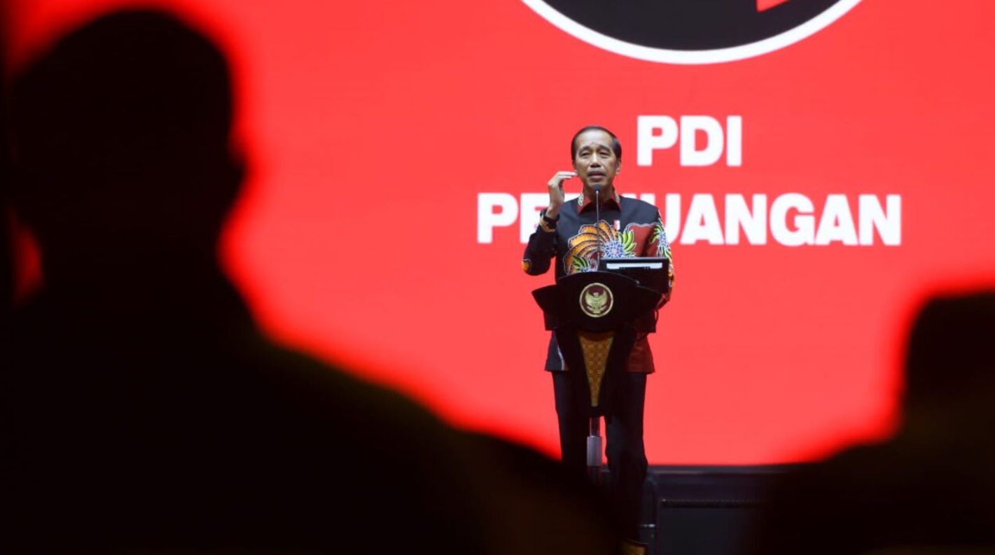 Presiden Joko Widodo memberikan sambutan pada Peringatan Hari Ulang Tahun (HUT) ke-50 PDI Perjuangan yang digelar di JIExpo Kemayoran, Jakarta, pada Selasa, 10 Januari 2023. FOTO: BIRO PERS SETPRES