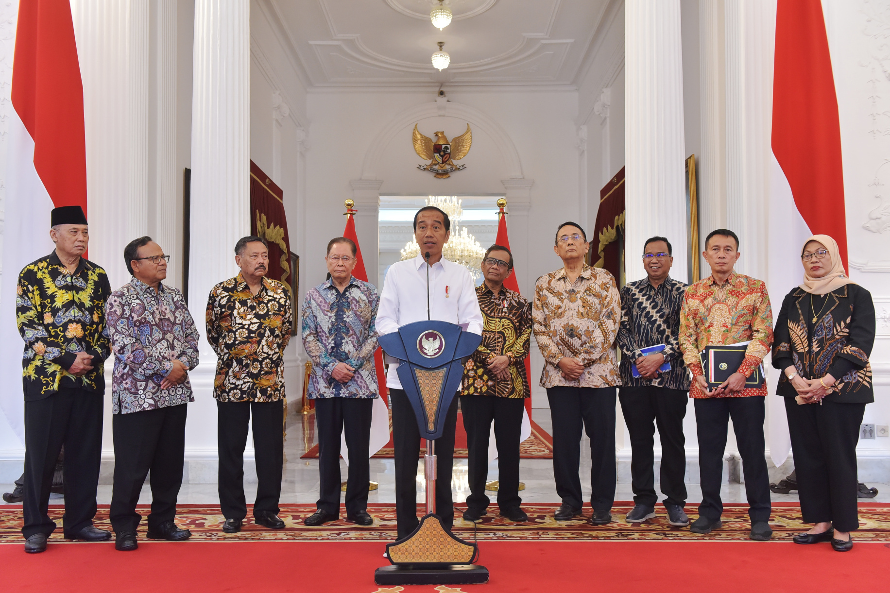 Presiden Joko Widodo memberikan keterangan pers usai menerima Laporan Tim Penyelesaian Non-Yudisial Pelanggaran Hak Asasi Manusia yang Berat Masa Lalu, di Istana Merdeka, Jakarta, Rabu, 11 Januari 2023. FOTO: SETKAB