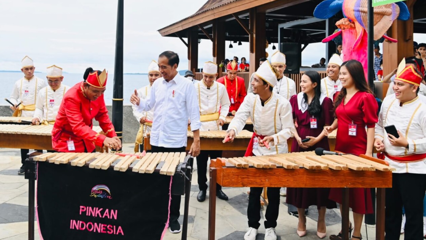 Kembali musik kolintang mengalun mengiringi kehadiran Presiden dan rombongan. Banyaknya masyarakat dan meminta berfoto bersama, membuat Presiden tidak dapat segera mungkin ke tempat acara.