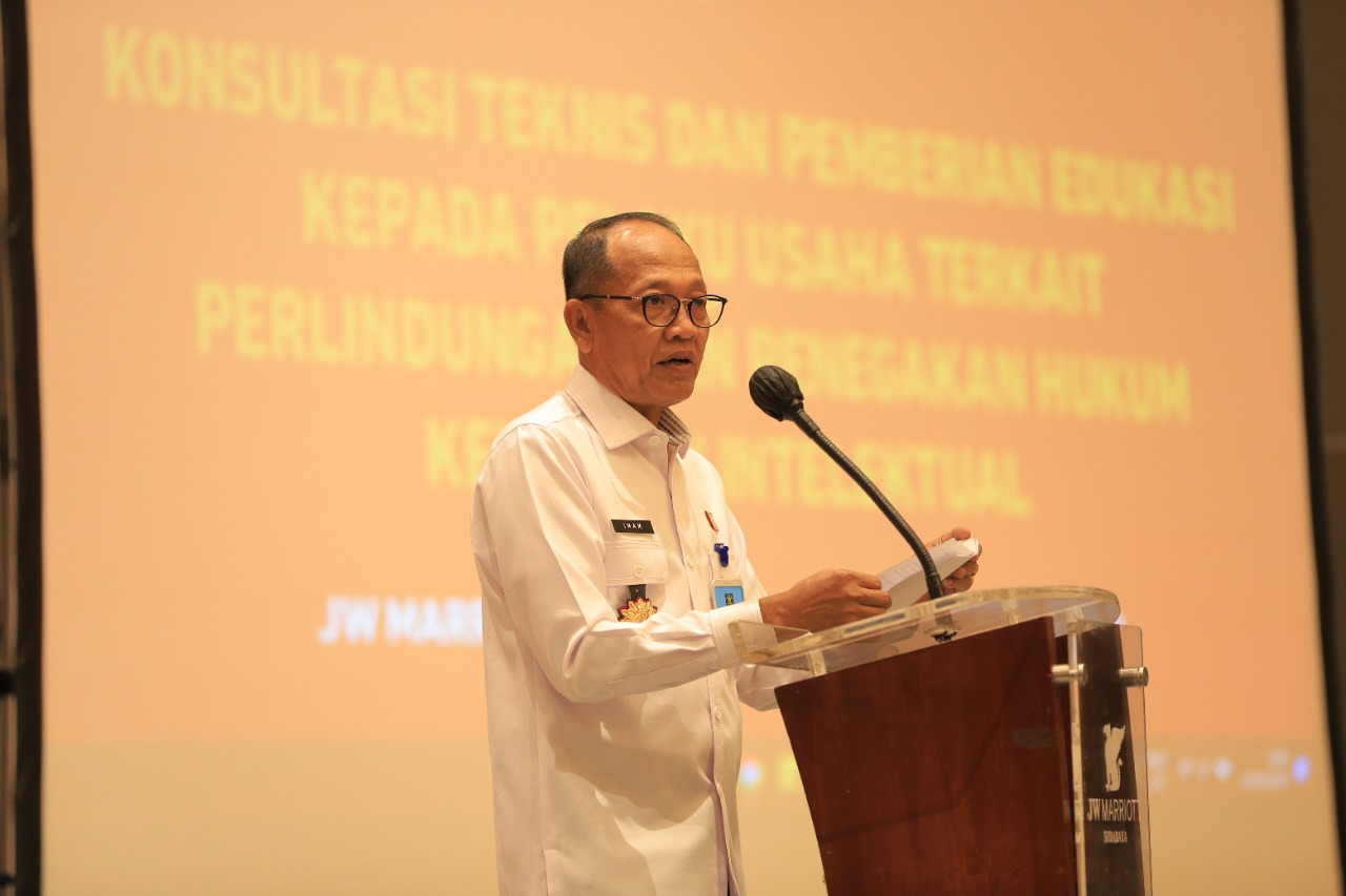 Kegiatan yang digelar di Hotel JW Marriot itu dihadiri Kakanwil Kemenkumham Jatim Imam Jauhari dan Direktur Penyidikan dan Penyelesaian Sengketa Kekayaan Intelektual Brigjen Pol Anom Wibowo serta Direktur Merek dan Indikasi Geografis Kurniaman Telaumbanua.