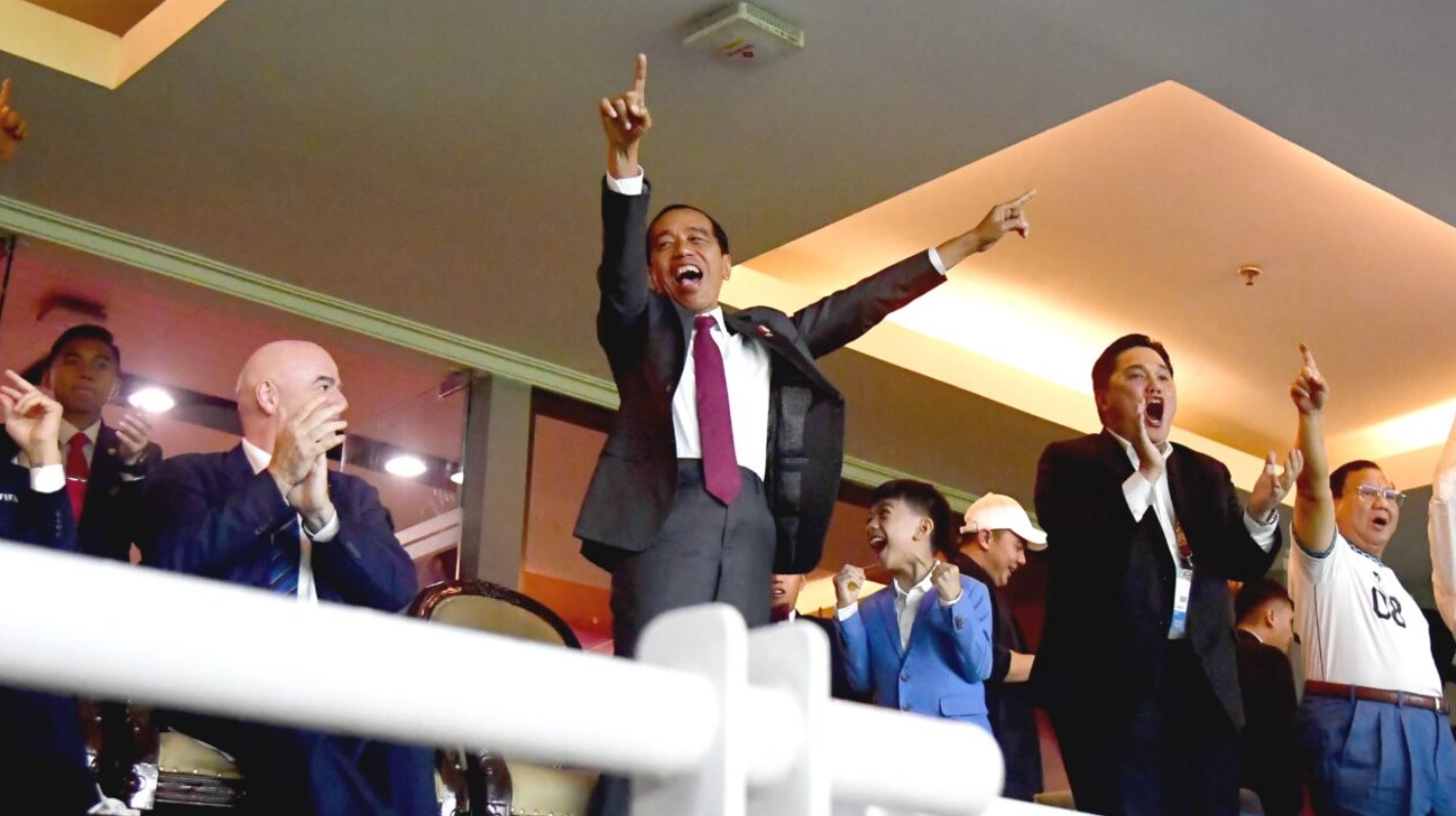 “Senang lah senang, karena 1-1 yang pertama berarti kita dapat satu poin meskipun mati-matian menjaga agar gawang kita enggak bobol lagi,” ungkap Presiden usai menyaksikan pertandingan.