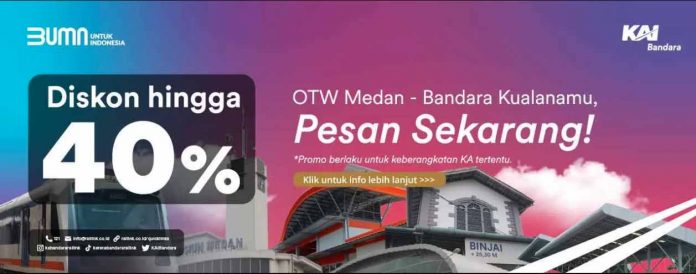 Kabar baik adalah KAI menggelar promo tiket KA Bandara Kualanamu Medan berupa diskon hingga 40%.