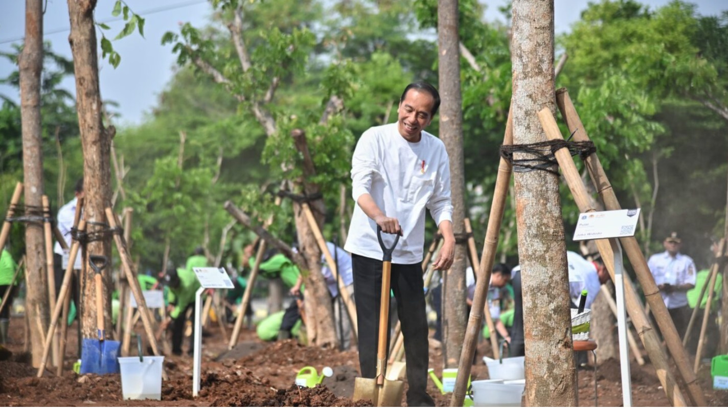 “Ini adalah dalam rangka antisipasi perubahan iklim, mengantisipasi pemanasan global yang sudah kita rasakan bersama-sama dan nyata, juga dalam rangka mengatasi polusi yang ada di Jabodetabek,” ungkap Presiden Jokowi Kegiatan bertajuk Gerakan Tanam Pohon Bersama tersebut dilaksanakan di Hutan Kota JIEP Kawasan Industri Pulogadung, Jakarta, pada Rabu, 29 November 2023 setelah menanam pohon Pulai.