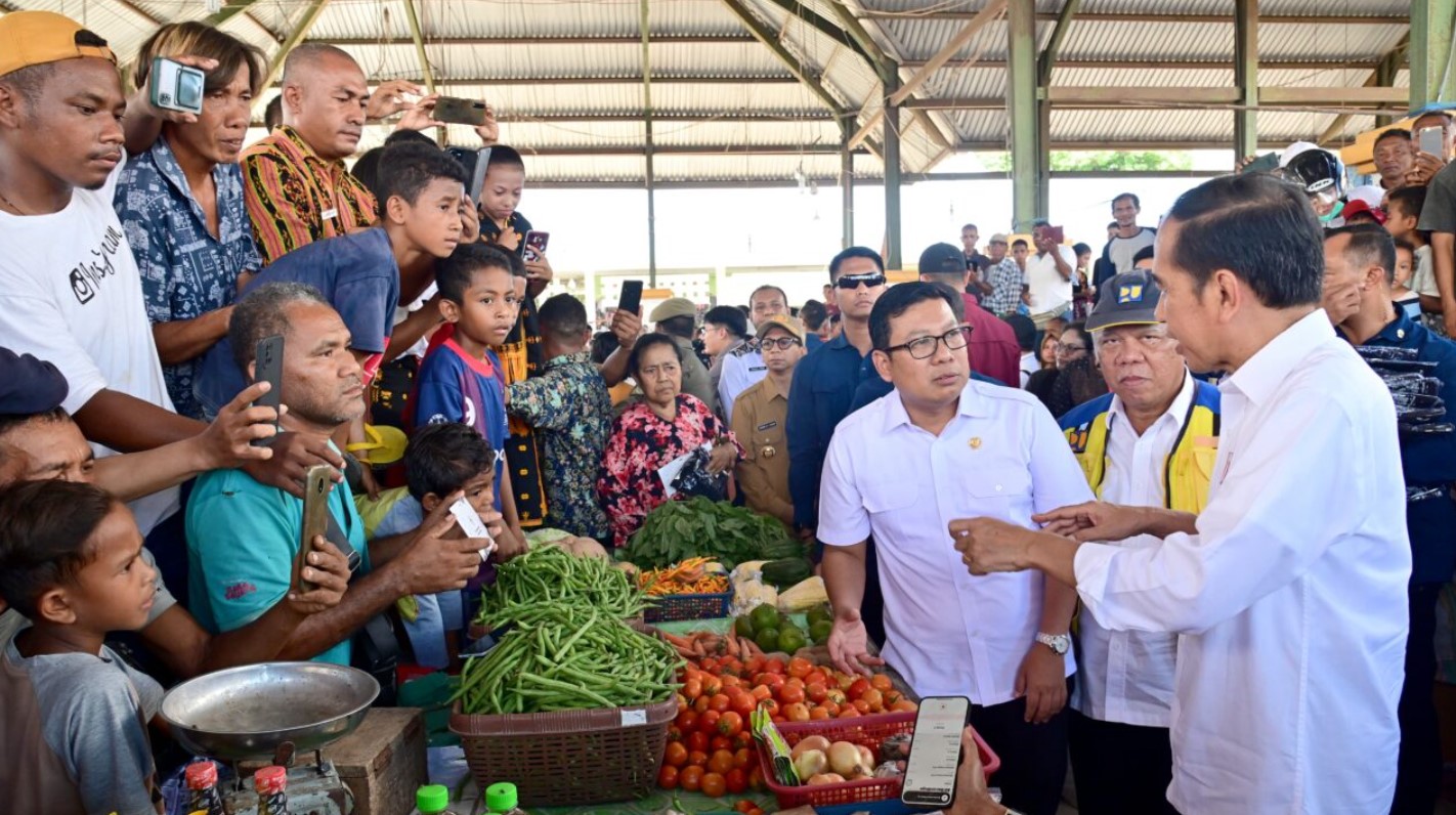 (Vibizmedia-Nasional) Presiden Joko Widodo mengecek harga kebutuhan pokok yang ada di Pasar Danga, Kabupaten Nagekeo, Provinsi Nusa Tenggara Timur (NTT), pada Selasa, 5 Desember 2023.