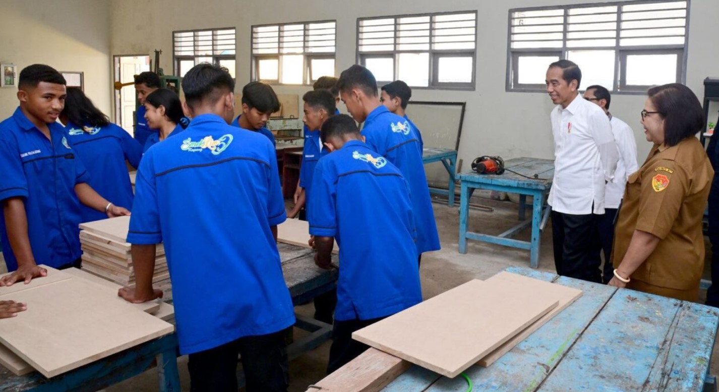 Presiden Joko Widodo mengunjungi SMK Negeri 5 Kupang, pada hari Rabu, 6 Desember 2023 untuk meninjau fasilitas dan praktik pembelajaran siswa. FOTO: BIRO PERS SETPRES