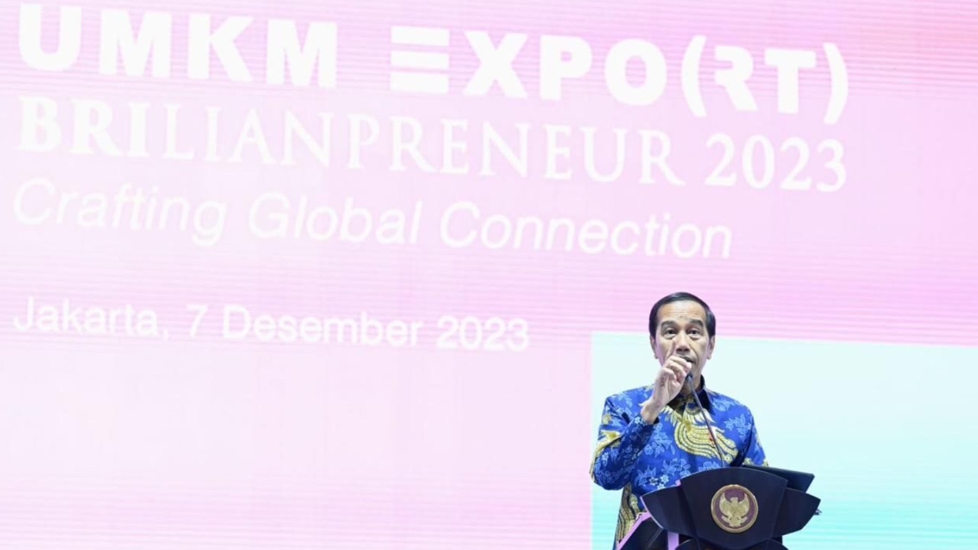 “UMKM kita harus terus naik kelas, harus go digital, harus go international, dan menguasai pasar lokal yang kita miliki karena pasar kita besar sekali. Tetapi juga, tidak melupakan yang namanya pasar ekspor dan pasar global,” ungkap Presiden saat membuka secara resmi perhelatan UMKM Expo(rt) Brilianpreneur yang digelar di Jakarta Convention Center, Jakarta, pada Kamis, 7 Desember 2023..