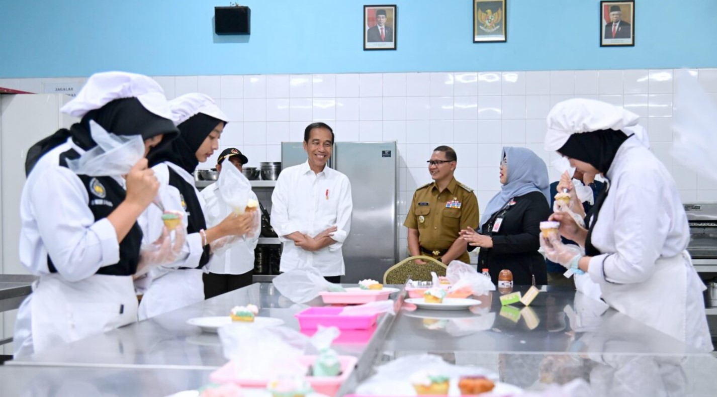 “Tadi sudah masuk ke ruang praktik kecantikan, boga, beauty therapy, semuanya betul-betul ini saya sudah masuk ke SMK dari Sumatra sampai ke Papua ini yang terbaik,” kata Presiden di hadapan guru dan siswa.