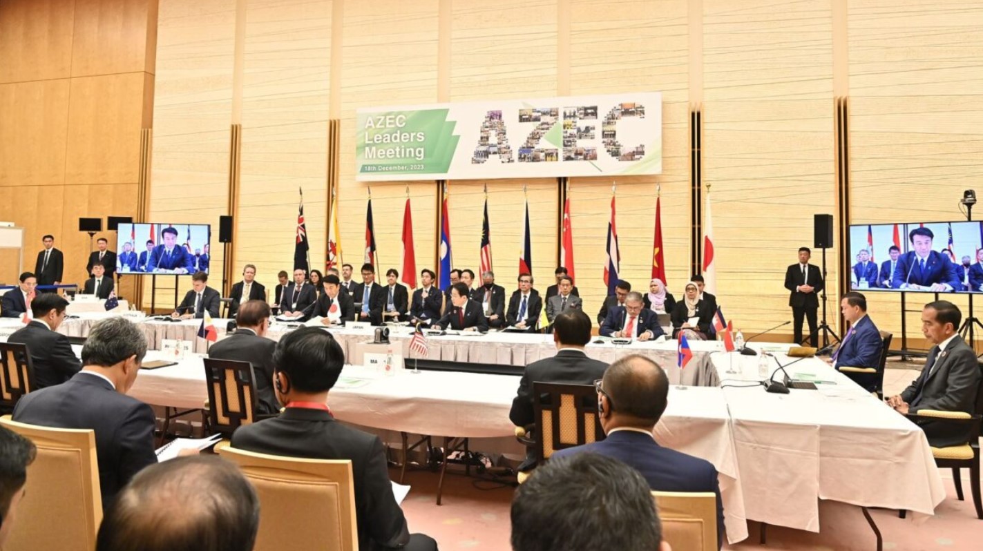 Presiden Joko Widodo menyampaikan pandangannya pada Konferensi Tingkat Tinggi (KTT AZEC) yang digelar di Main Hall Kantor PM Jepang, Tokyo, pada Senin, 18 Desember 2023. FOTO: BIRO PERS SETPRES
