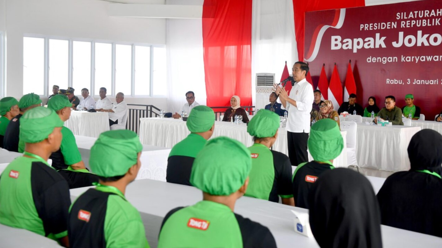 (Vibizmedia-Nasional) Presiden Joko Widodo mengunjungi Pabrik PT Tong Tji Tea Indonesia di Kabupaten Tegal, Provinsi Jawa Tengah, pada Rabu, 3 Januari 2024.