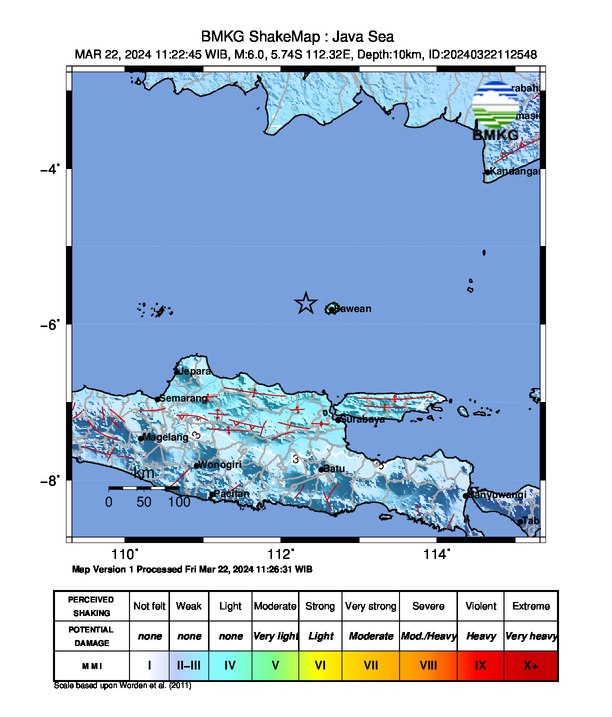 (Vibizmedia-Nasional) Badan Nasional Penanggulangan Bencana (BNPB) melaporkan gempa berkekuatan M6,0 mengguncang Kabupaten Tuban, Jawa Timur, pada Jumat, 22 Maret 2024 pukul 11.22 WIB.