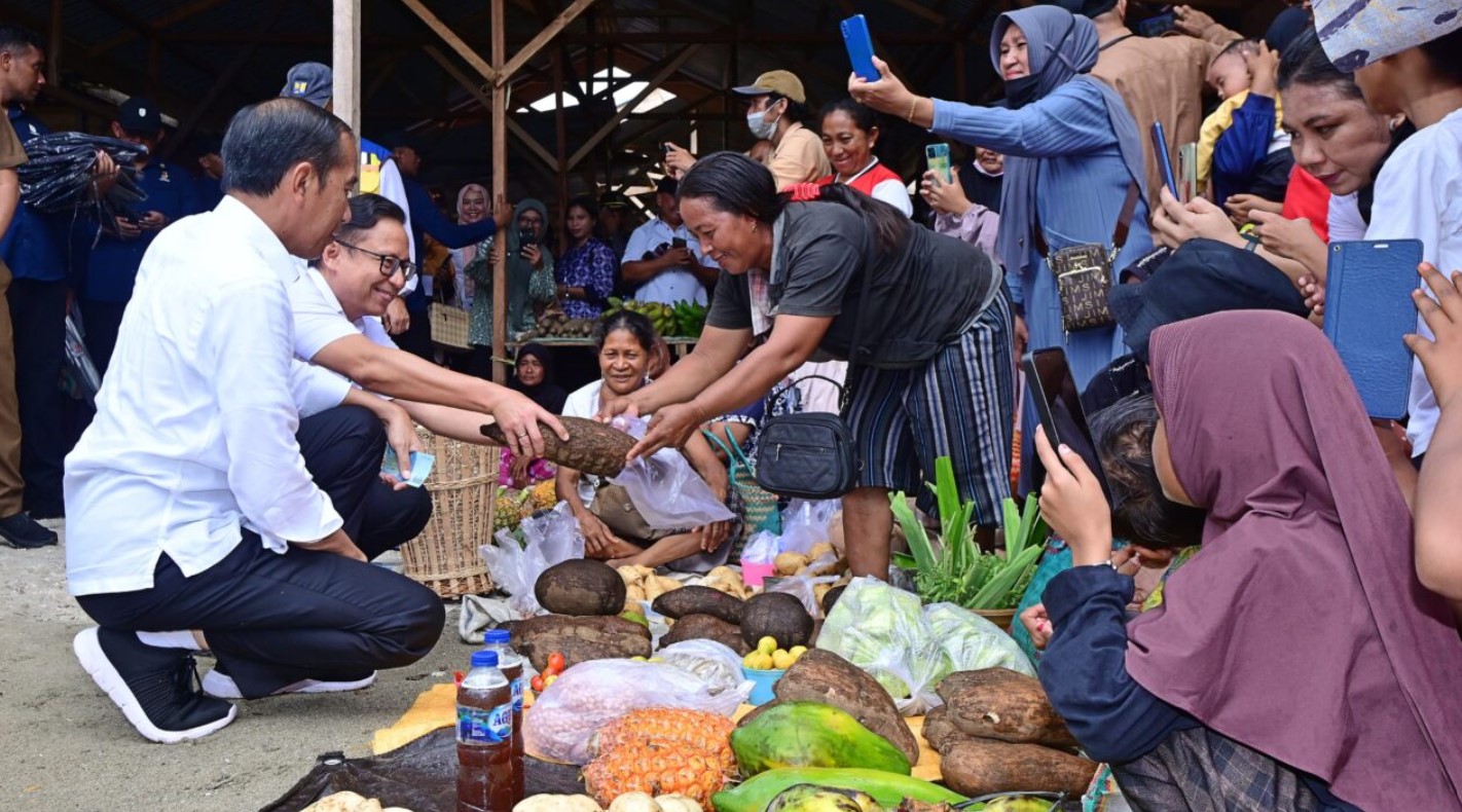 (Vibizmedia-Nasional) Presiden Joko Widodo didampingi Menteri Pekerjaan Umum dan Perumahan Rakyat Basuki Hadimuljono, Menteri Kesehatan Budi Gunadi Sadikin, Wakil Gubernur Sulawesi Tengah Ma’mun Amir, dan Pj. Bupati Banggai Kepulauan Ihsan Basir meninjau langsung kondisi harga bahan pokok di pasar dan berinteraksi dengan para pedagang di Pasar Salakan, Kabupaten Banggai Kepulauan, Provinsi Sulawesi Tengah, pada Selasa, 26 Maret 2024.