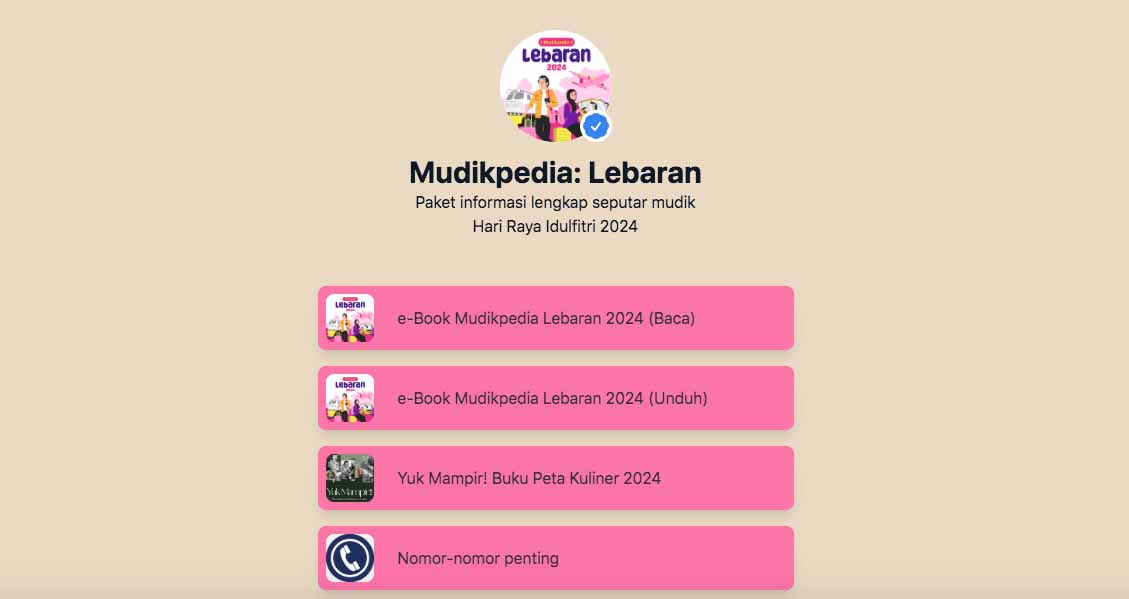 Ragam informasi selama periode Lebaran 2024 tersebut dapat diakses pada tautan https://s.id/mudikpedia.